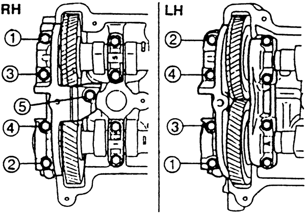 NOTE: The thrust plate positions for the right and left cylinder head camshafts are different.