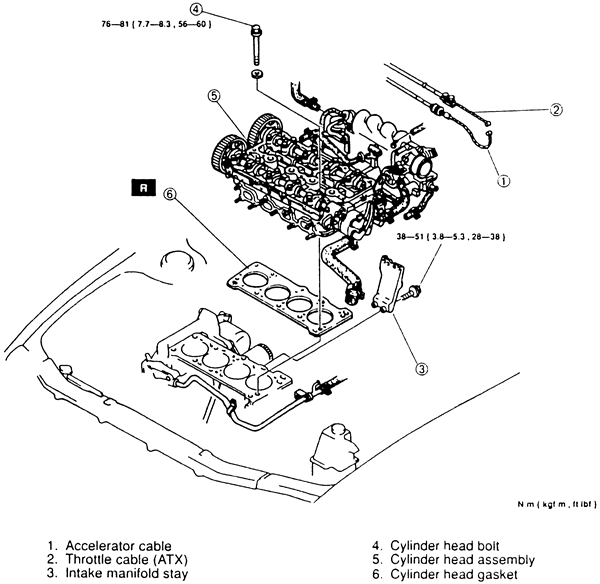 | Fig. 5: Cylinder head bolt removal sequence-1.6L and 1.8L (FP) engines |