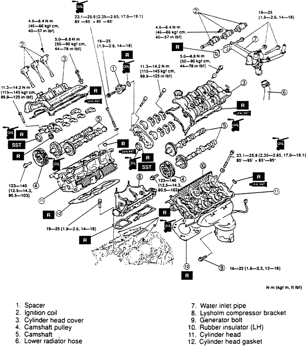| Fig. 8: Exploded view of the cylinder head assembly-2.0L engine |