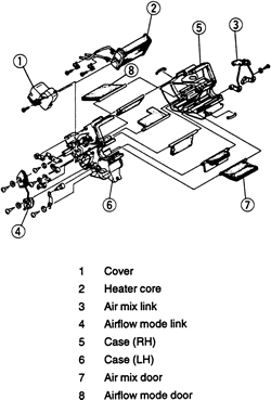 | Fig. 6: Exploded view of the heater core and heater unit assembly-1998-00 Miata |