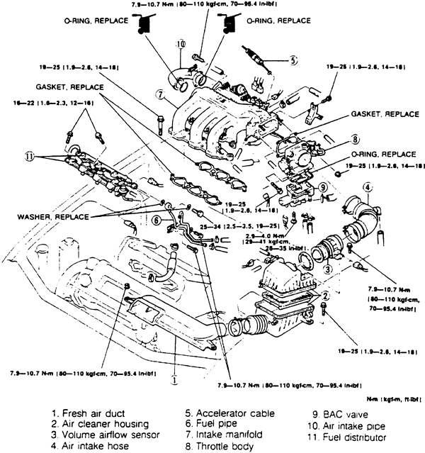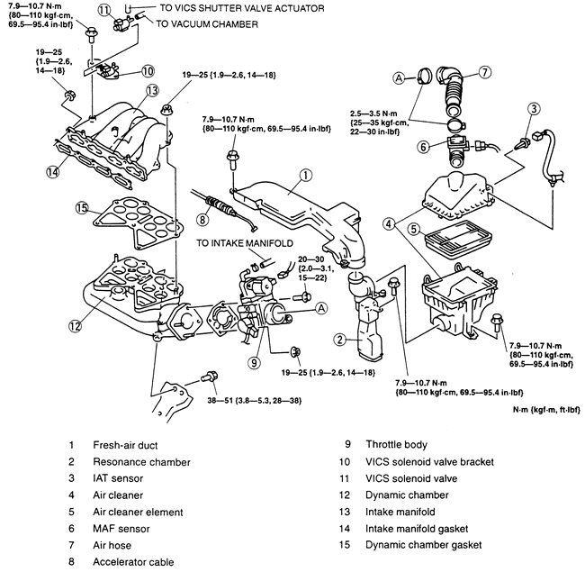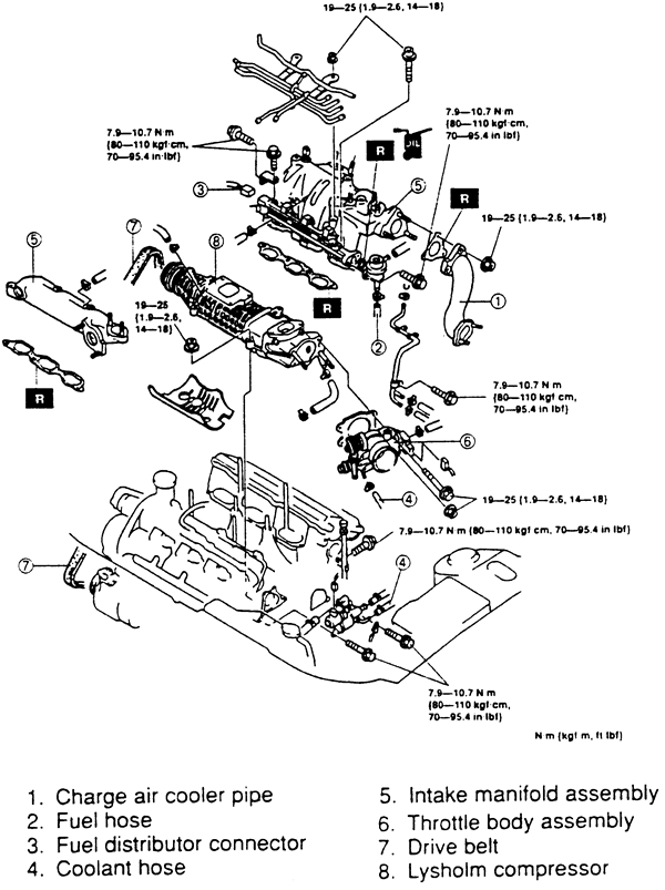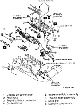 | Fig. 9: Exploded view of the intake manifold assembly-2.5L engine |