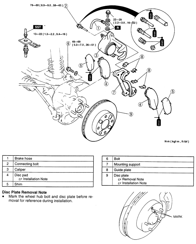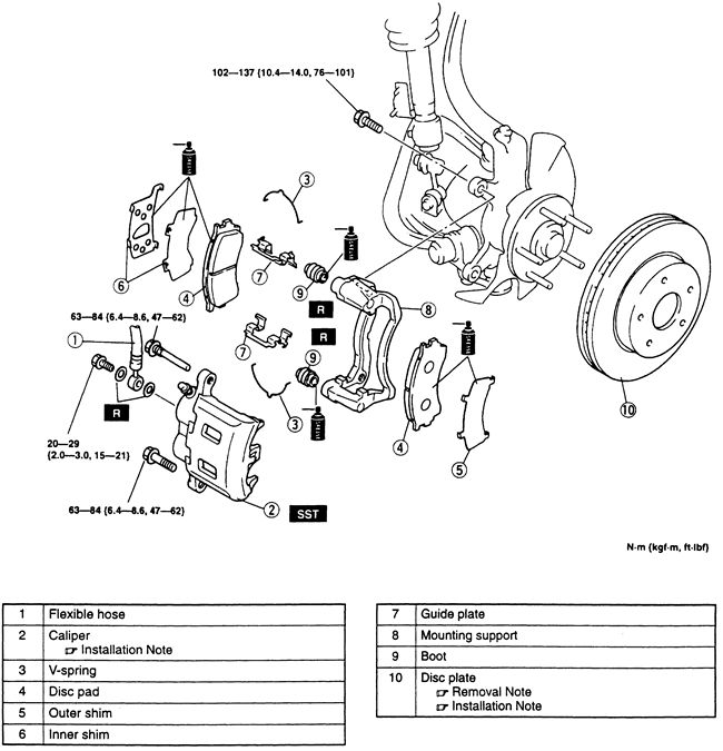 | Fig. 1: Front disc brakes-Protégé |