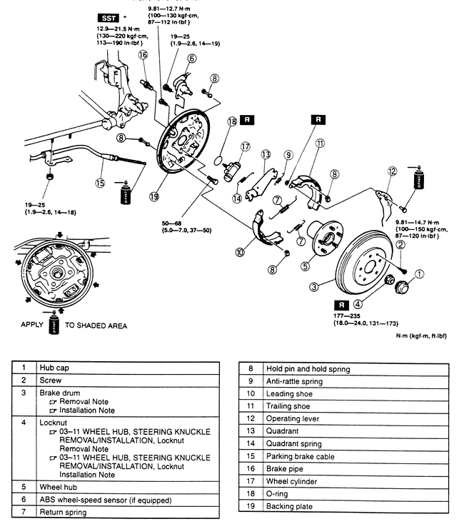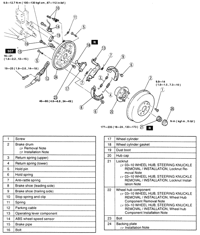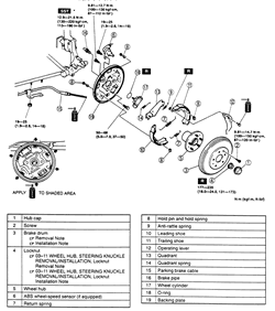 Fig. 1: Rear drum brakes-Protégé
