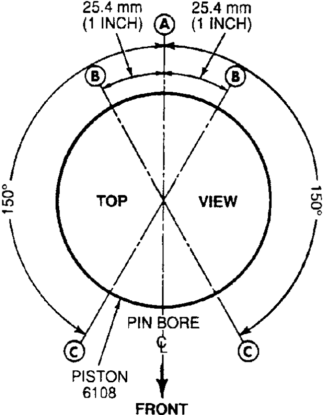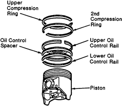 | Fig. 1: Piston ring positioning — Ford/Mazda |