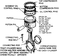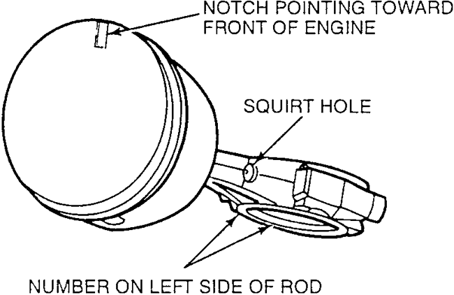 | Fig. 3: Piston and connecting rod positioning on Ford/Mazda 2.3L–2.5L engines |