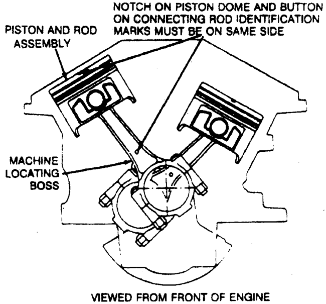 | Fig. 4: Piston and connecting rod positioning on Ford/Mazda 3.0L |