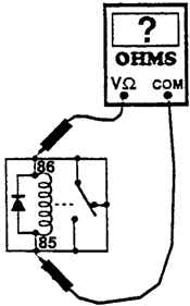 | Fig. 1: Use an ohmmeter to check for circuit continuity of the coil in the relay |