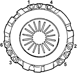 Loosen the pressure plate and cover attaching bolts evenly until the