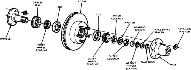 | Fig. 1: Exploded view of the wheel bearing and manual locking hub assembly |