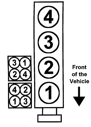 | Fig. 1: 2.3L (VIN A) Engine Firing order: 1–3–4–2 Distributorless ignition system |