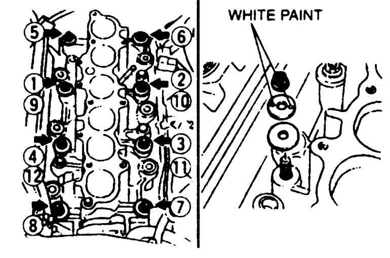 | Fig. 7: Right cylinder head loosening sequence — 2.5L engine |