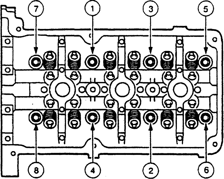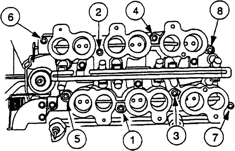| Fig. 8: Cylinder head bolt tightening sequence — 3.0L engine |