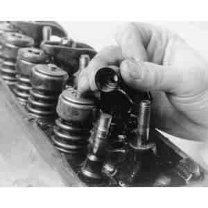 NOTE: Check for burrs or high spots on the valve tip and valve lock area. Use a metal file to remove burrs before removing the valve from the head.