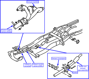 Refer to the exploded view of the exhaust system for removal and installation of the following components;