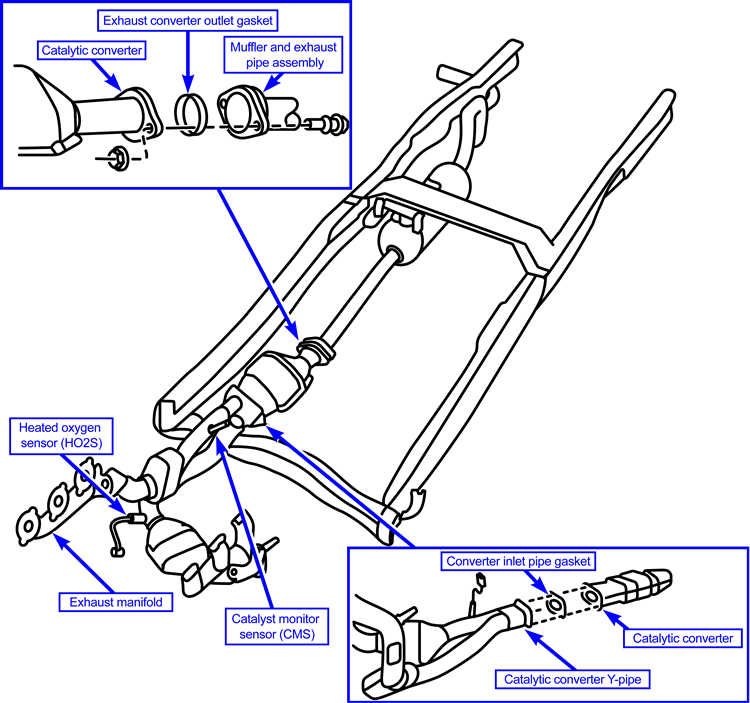 Refer to the exploded view of the exhaust system for removal and installation of the following components;