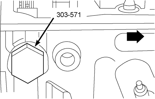 - Install the timing chain tensioner tool (303-571) from where the camshaft tensioner was removed.