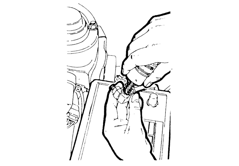 Clean the cable clamps and the battery terminal with a wire brush, until all corrosion, grease, etc., is removed and the metal is shiny. It is especially important to clean the inside of the clamp thoroughly (an old knife is useful here), since a small deposit of oxidation there will prevent a sound connection and inhibit starting or charging. Special tools are available for cleaning these parts, one type for conventional top post batteries and another type for side terminal batteries. It is also a good idea to apply some dielectric grease to the terminal, as this will aid in the prevention of corrosion.