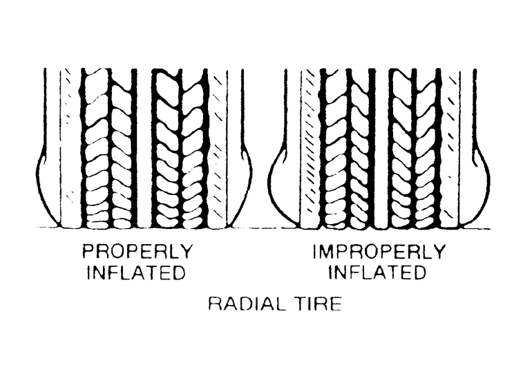 | Fig. 2: Radial tires have a characteristic sidewall bulge; don't try to measure pressure by looking at the tire. Use a quality air pressure gauge |