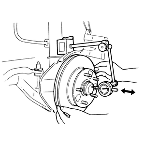 | Fig. 3: Checking front wheel bearing axial play