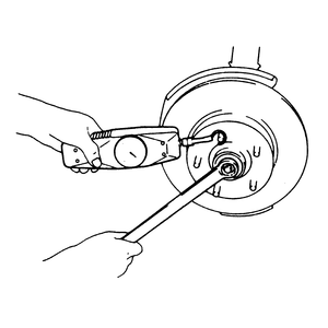 | Fig. 1: Adjusting front wheel bearing preload using
