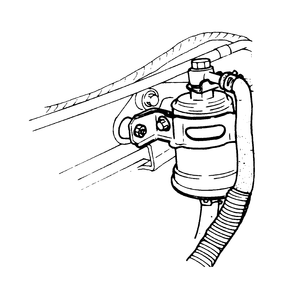 - Disconnect the fuel filter lines and remove the filter from its retainer.