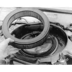 On carburetor equipped engines, you typically have to remove only the top cover of the air cleaner. Remove the wingnut at the center of the housing and unfasten the three clips situated around the sides. Then, pull the top cover off and remove the air cleaner element. When installing the new element, make sure it seats squarely around the bulge in the center of the lower air cleaner housing. Install the housing top, turning it until the wingnut mounting stud lines up with the hole in the top (it's usually off center). Note that the top cover should seat tightly all around. Install the wingnut and fasten the clips.