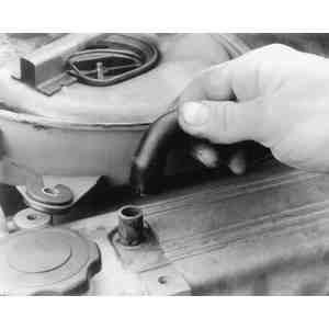| Fig. 7: Disconnect the hose at the rocker arm cover