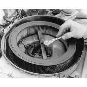 In order to access the carburetor/throttle body or other component(s) beneath the air cleaner assembly, it may be necessary to remove the entire air cleaner assembly. Disconnect all hoses and vacuum lines leading to the air cleaner assembly (it may be helpful to tag these lines for easier installation), and remove the necessary fasteners. Installation is the reverse of removal.
