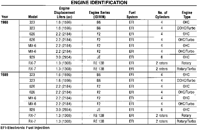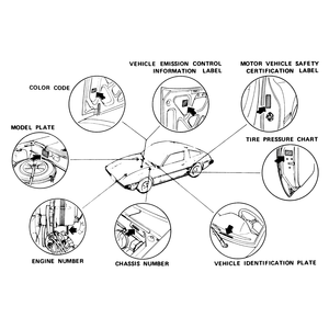 | Fig. 2: RX-7 vehicle and component identification/information stickers. (On 1980–89 models, the chassis number is located beside the model number) |