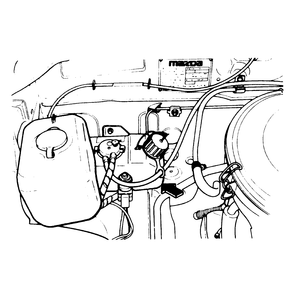 On RX-7 models, except those sold in California, a sub-zero starting assist fluid reservoir is located to the right of the engine near the firewall. When the outside temperature is below 0°F (−18°C), a thermoswitch operates a small electric pump in the reservoir which injects a pre-measured squirt of 90% aluminum-compatible antifreeze and 10% water into the carburetor throttle bore or intake manifold while the starter is being cranked. This keeps the fuel from icing and promotes better starting.