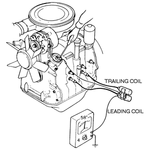 - Connect the dwell angle tester to the trailing ignition coil. Then, start