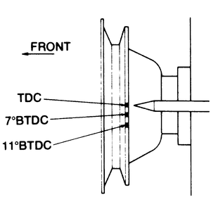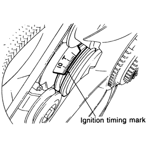 crankshaft pulley and the ignition timing scale.