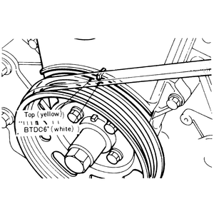 - Aim the timing light at the crankshaft pulley and check that the yellow