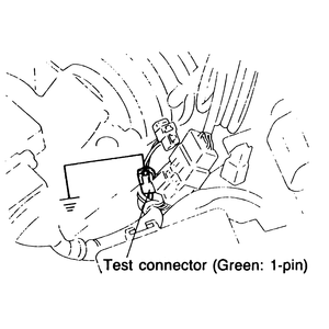 - Ground the green test connector pin with a jumper wire, as shown in the