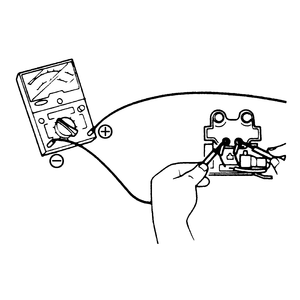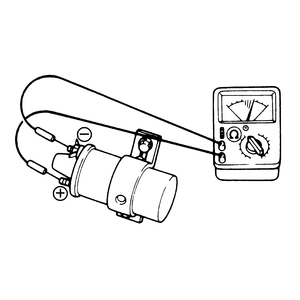 - Connect an ohmmeter, set to the x 1 scale, to the positive (+) and negative