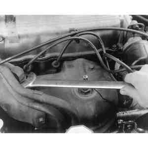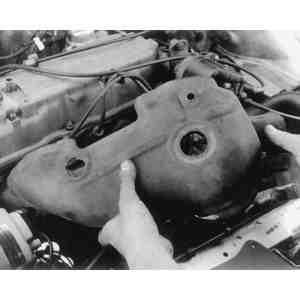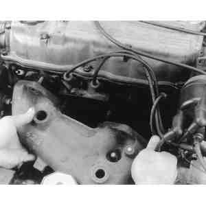 | Fig. 9: Withdraw the exhaust manifold from its mounting