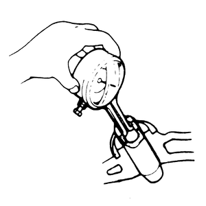 | Fig. 2: Measuring valve stem diameter with a micrometer