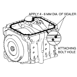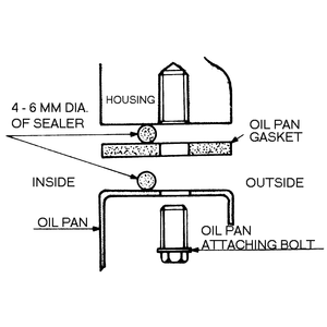 | Fig. 3: Apply sealant to a gasketless oil pan in