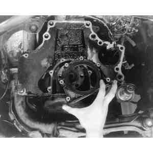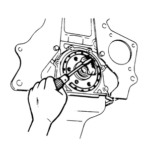| Fig. 1: Removing the rear main oil seal from a 1983–87