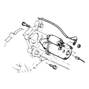 - Remove the starter securing bolts and withdraw the starter assembly.