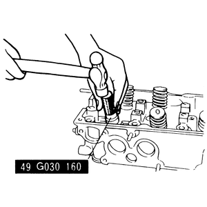 NOTE: If such a tool is not available, you may substitute a Valve Spring Lifter (such as Mazda Part No. 49 0223 105B or equivalent), which is applied from the top side only.