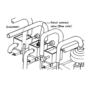 - Connect a tachometer to the engine. Disconnect the relief solenoid valve