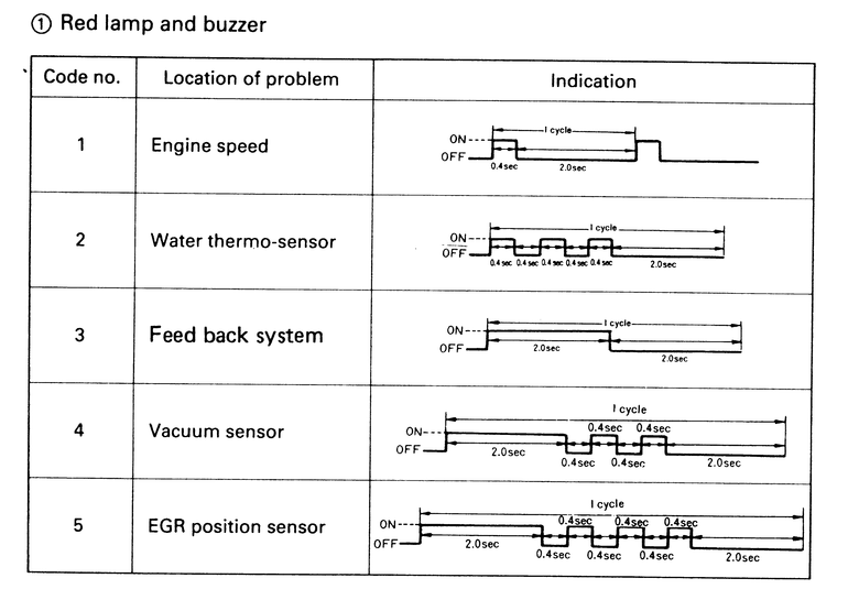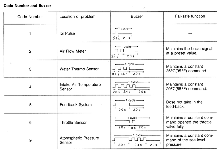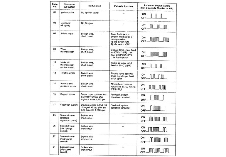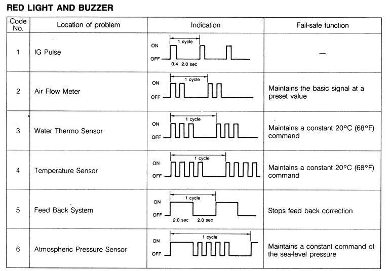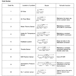 | Fig. 3: Diagnostic codes — 1985 fuel injected RX-7 |
