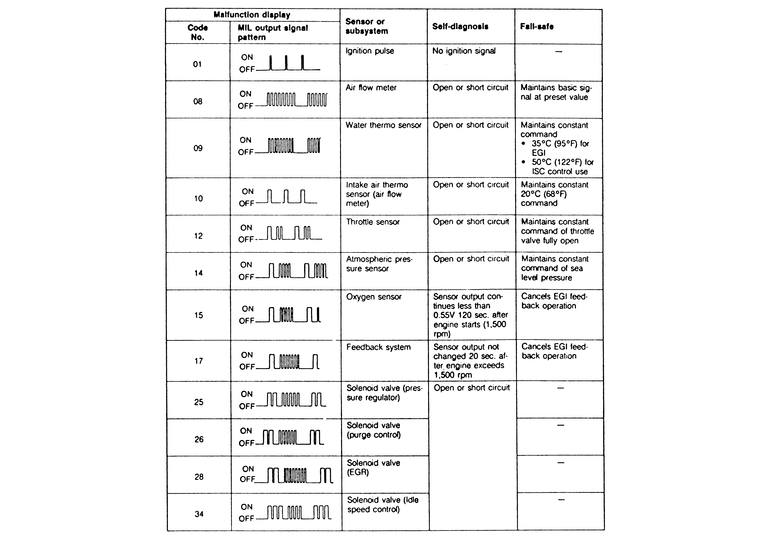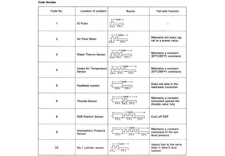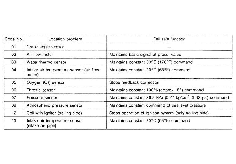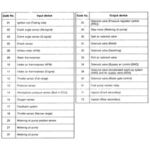 | Fig. 11: Diagnostic codes — 1988–89 626/MX-6 non-turbo |