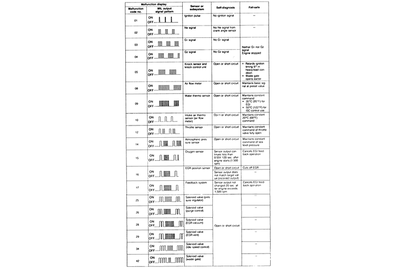 | Fig. 12: Diagnostic codes — 1988–89 626/MX-6 turbo |