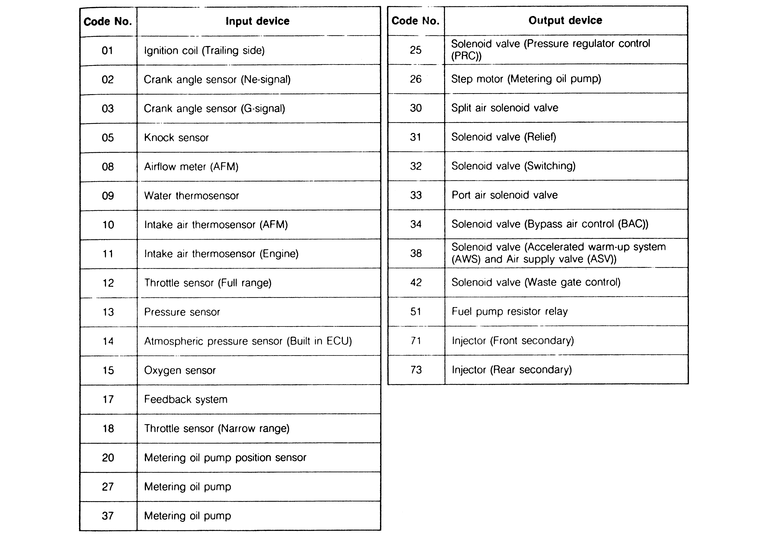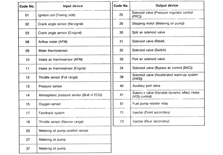 | Fig. 17: Diagnostic codes — 1989 RX-7 turbo |