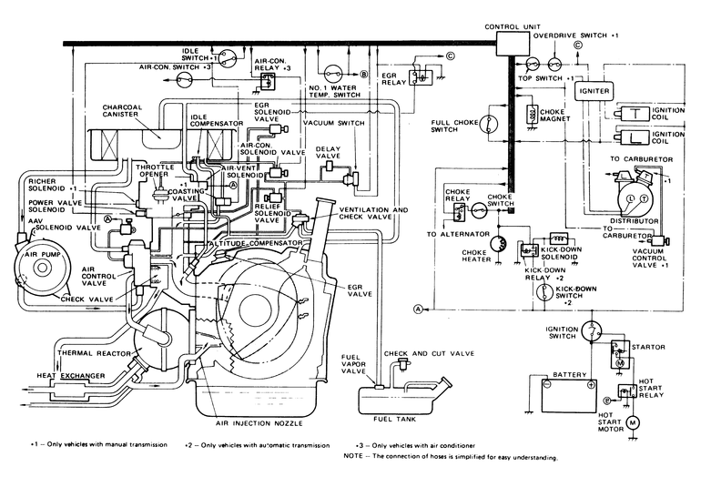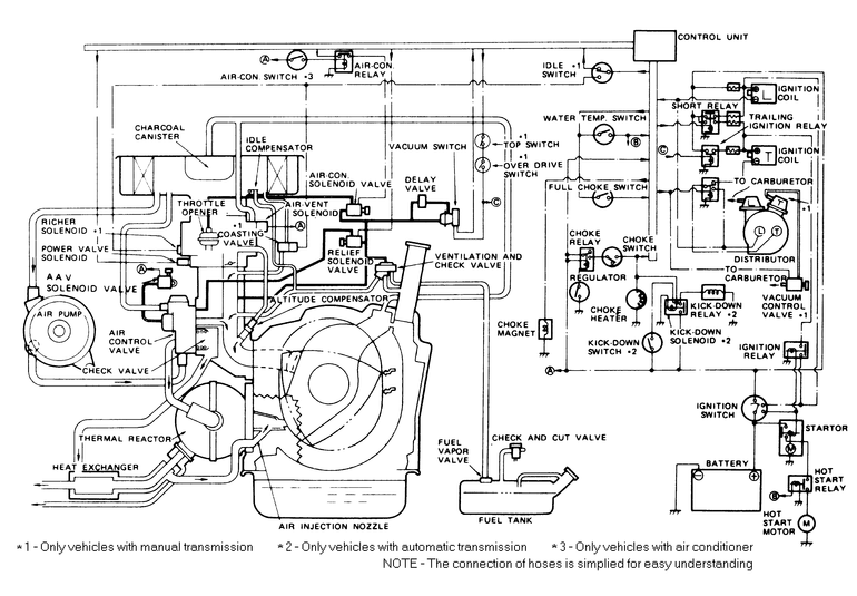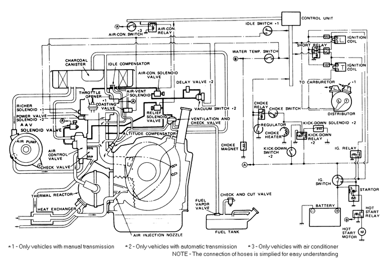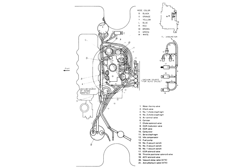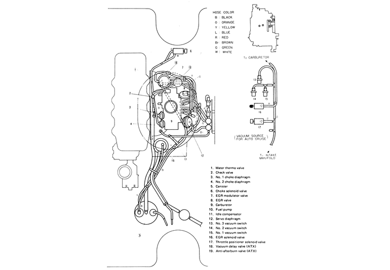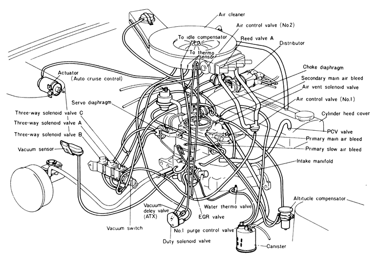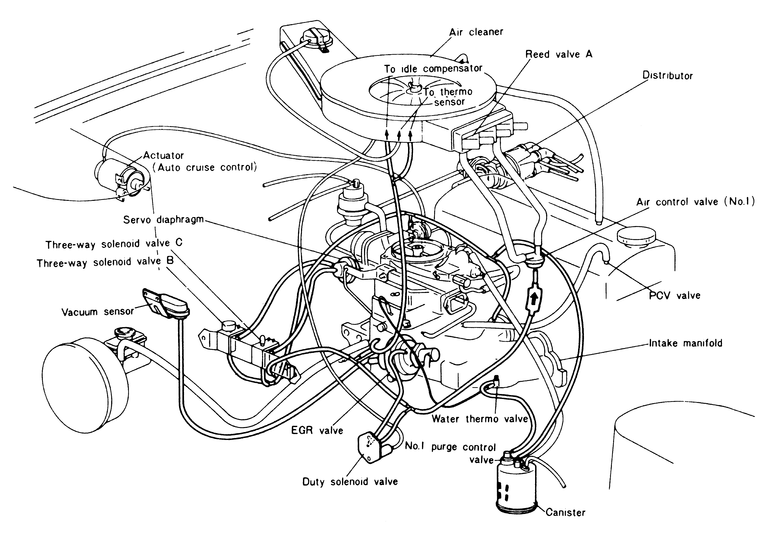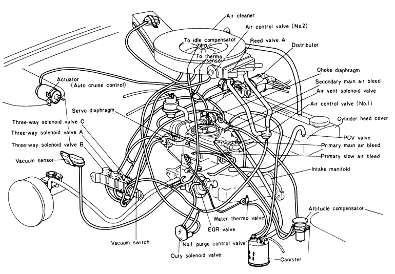 Following is a compilation of vacuum diagrams for most of the engine and emissions package combinations covered by this manual. Because vacuum circuits will vary based on various engine and vehicle options, always refer first to the vehicle emission control information label, if present. Should the label be missing, or should the vehicle be equipped with a different engine than the car's original equipment, refer to the following diagrams for the same or similar configuration.