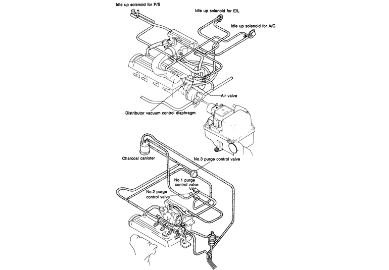Fig. 24: Emission control systems — 1986–87 fuel injected 323 |