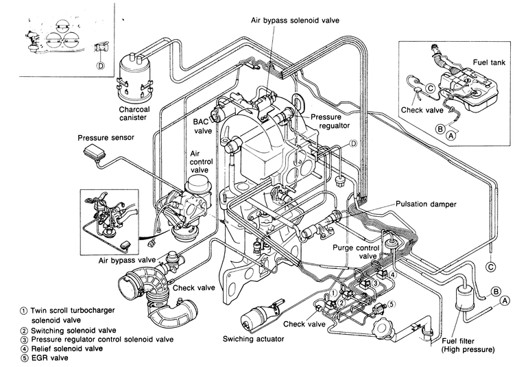 Fig. 32: Emission control systems — 1988–89 626 and MX-6 turbo |