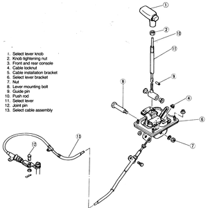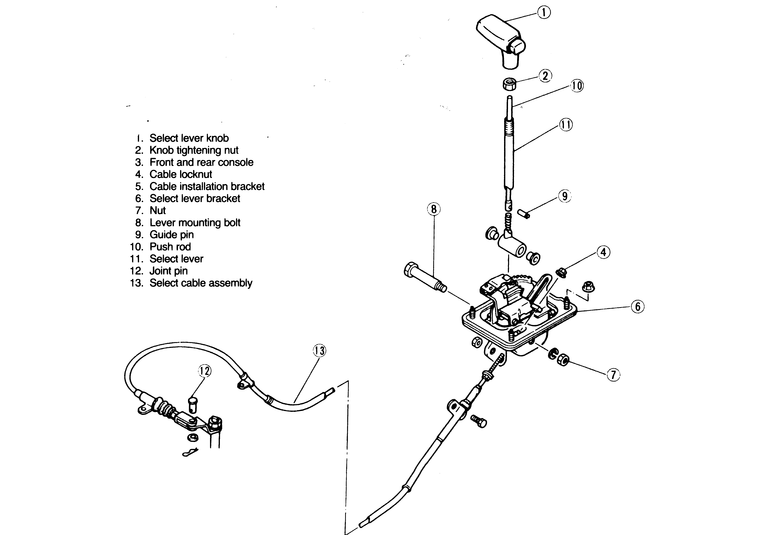 Engage the parking brake. Remove the shift lever boot. Loosen both locknuts